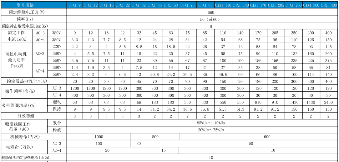 CJX1系列研讨接触器(以下简称接触器)主要用于研讨50Hz(或60Hz),额定绝缘电压为660V,在AC-3使用类别下额定工作电压为380V时额定工作电流为09~400A的电力线路中。作为供远距离接通和分断电路之用,并适用于控制研讨电动机的起动、停止及反转。