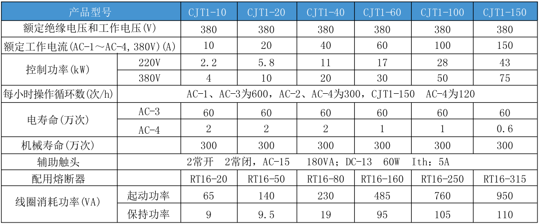 CJT1系列研讨接触器(以下简称接触器),主要用于研讨50Hz(或60Hz),在AC-3使用类别中额定工作电压380V时,额定工作电流至150A的电力线路中,供远距离接通和分断之用,并可与适当的热继电器组成电磁起动器,以保护可能发生操作过负荷的电路。同时也是CJ10系列接触器的替代产品。